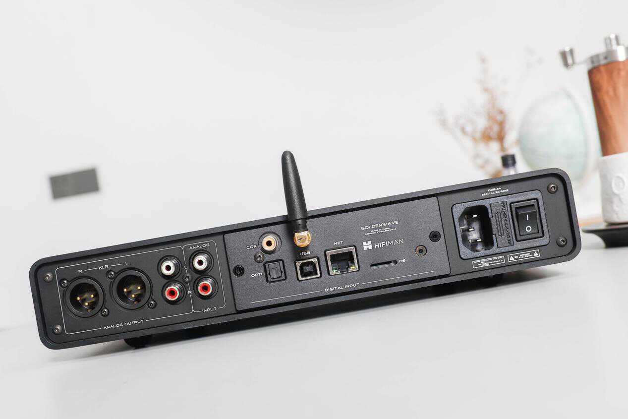 HIFIMAN小夜曲的背面接口可以用豪华阵容来形容,在这里提供了XLR平衡输出、RCA单端输出、RCA模拟音频输入、同轴、光纤、蓝牙、USB接口、LAN网络接口等,无论我们手里的新老装备,都可以轻松接驳,数字与模拟信号源一个不少,相当的丰富。